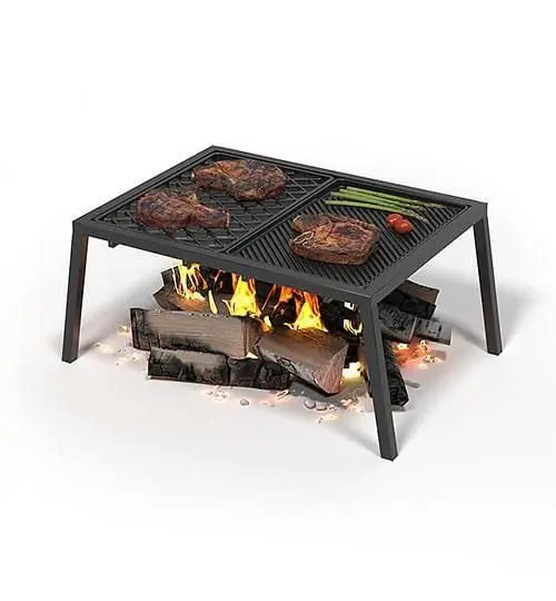 Подставка сделана из квадратного металлического профиля, покрыта термостойкой краской. Она рассчитана на размещение двух плит или решёток Везувий (Гриль, Стейк, Морепродукты или Бургер).