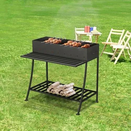 В основании мангала предусмотрена решетка, на которой можно хранить дрова или мешок углей.