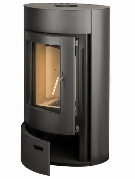 Благодаря высокой мощности (16 кВт) печь быстро прогреет помещение площадью до 150 кв.м, при этом за качество воздуха можно не беспокоиться - система внешнего воздухозабора позволяет забирать кислород, необходимый для горения, из соседнего помещения или с улицы. Дополнительно печь-камин оснащена теплообменником мощностью 5 кВт.